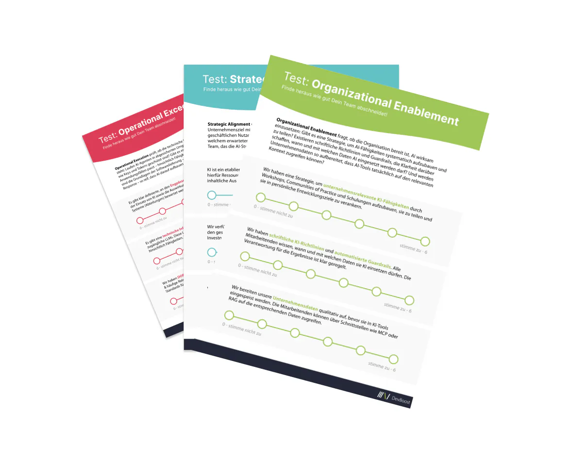 Wenn Du den Selbsttest durchführen willst, kannst Du Dir unseren AI Report herunterladen und Deinen Benchmark gegen den Industrie-Durchschnitt starten. Lade Dir dafür einfach unseren AI Report herunter, der Test ist ein Teil des Reports. Du findest ihn unter: https://devboost.com/ai-report