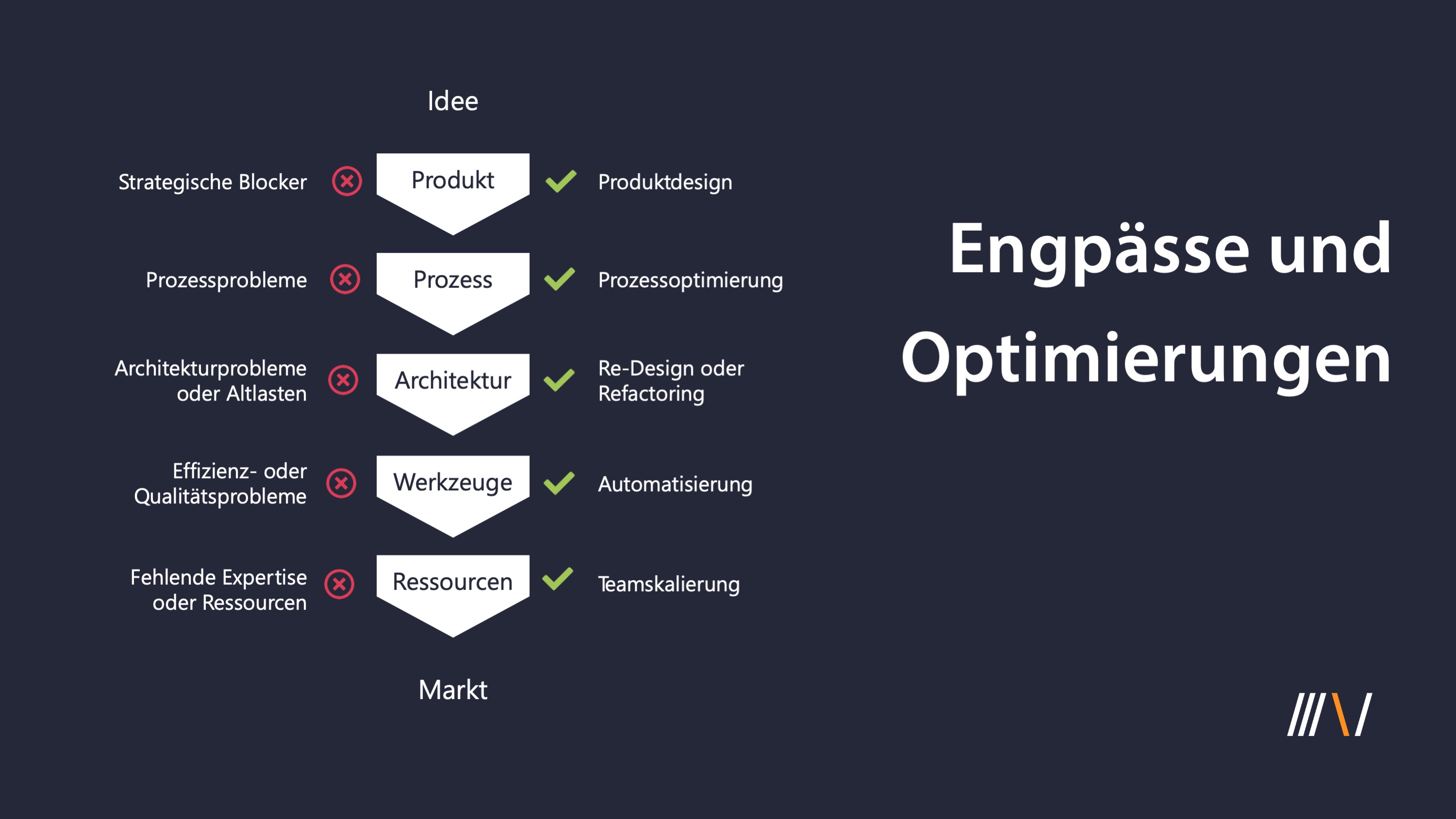 Analyse der kundenspezifischen Produkt- und Softwareentwicklung (Ist-Stand, Zielzustand), Identifikation von spezifischen Engpässen (tatsächliche Blocker, Optimierungshebel) sowie Sammlung von konkreten Lösungsideen (Aktionen).