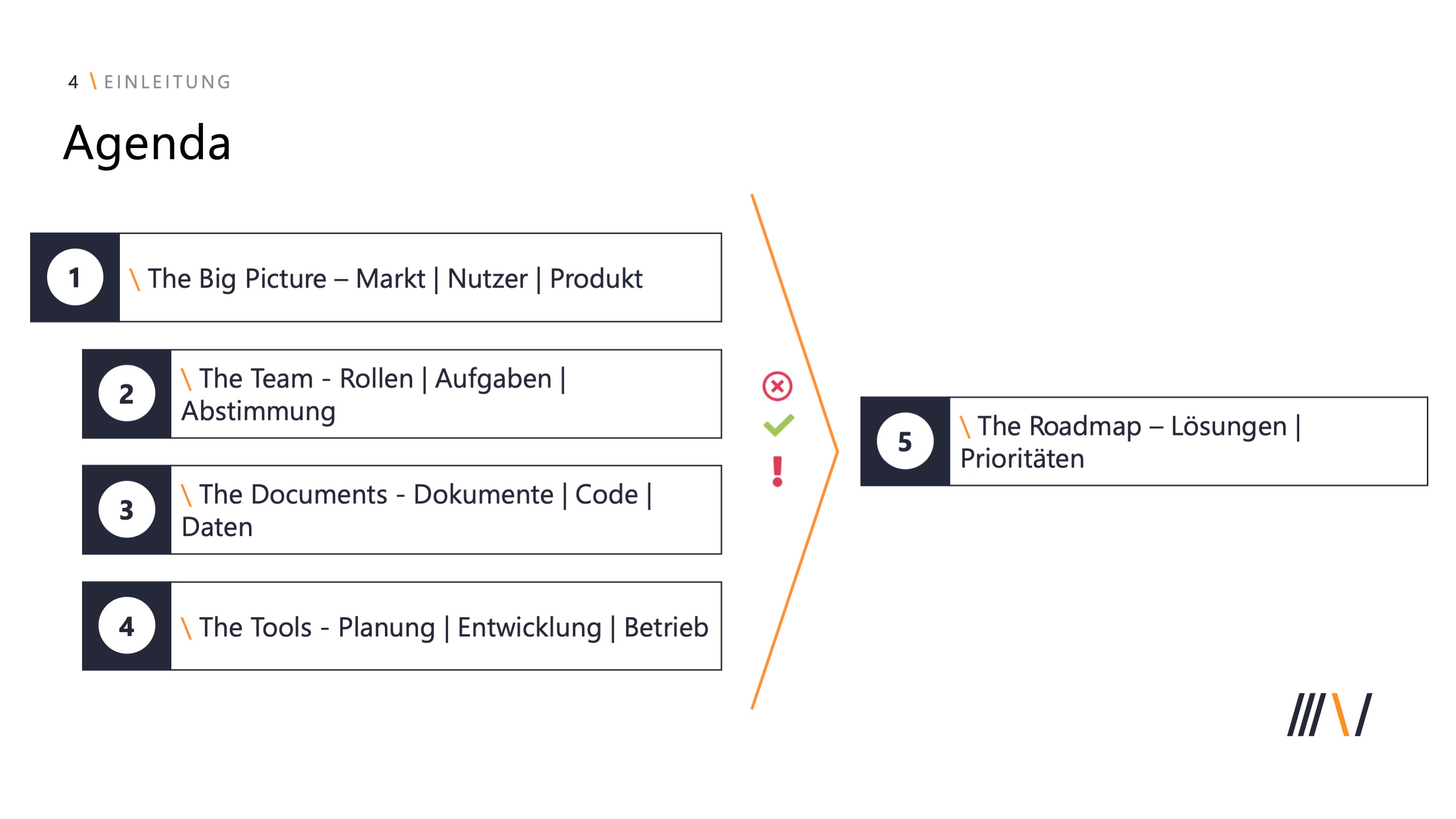 Abschließend betrachten wir gemeinsam die aktuelle Produkt-Roadmap. Welche Ziele und Meilensteine in der Weiterentwicklung Eures Produktes sind Euch besonders wichtig zu erreichen? Ein klares Verständnis der Produktvision und der Alleinstellungsmerkmale helfen in der späteren Priorisierung von Maßnahmen.