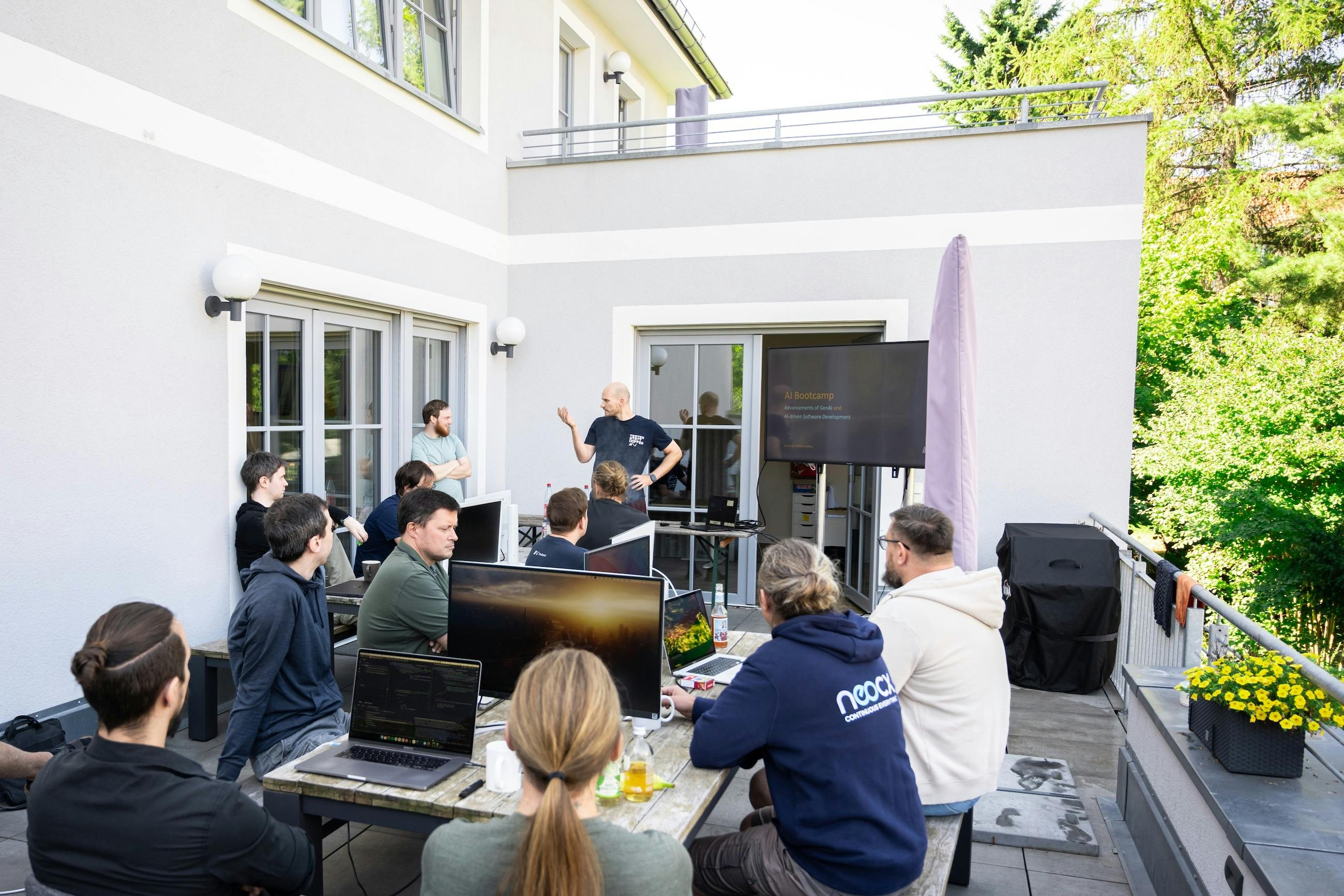 In der Regel führen wir das Bootcamp bei dir im Unternehmen durch. So können wir mit deinen echten Use Cases und Tools arbeiten. Auf Wunsch sind auch Remote- oder Hybrid-Varianten möglich.